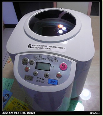 全自動麵包機這種東西,大為驚訝了一番,原來科技已經發展到如斯地步。前幾天看電視剛好轉到購物頻道,正巧也在介紹全自動麵包機,隨口問了藝菁同事有沒有這東西,借回來玩玩,想不到竟然真的有,隔幾天就幫我借到了(傻眼)。