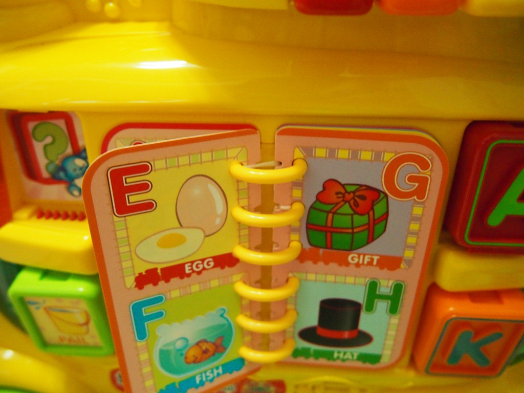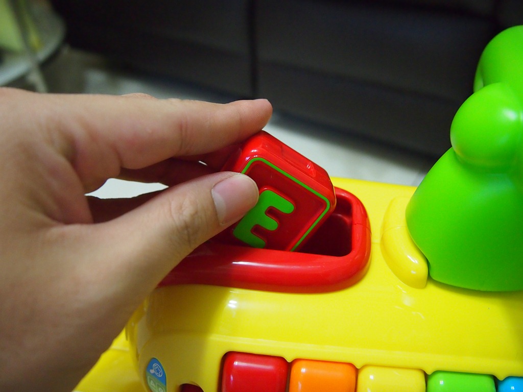 左側有四格凹槽,把內附的字母方塊放進去,會有對應的字母介紹。