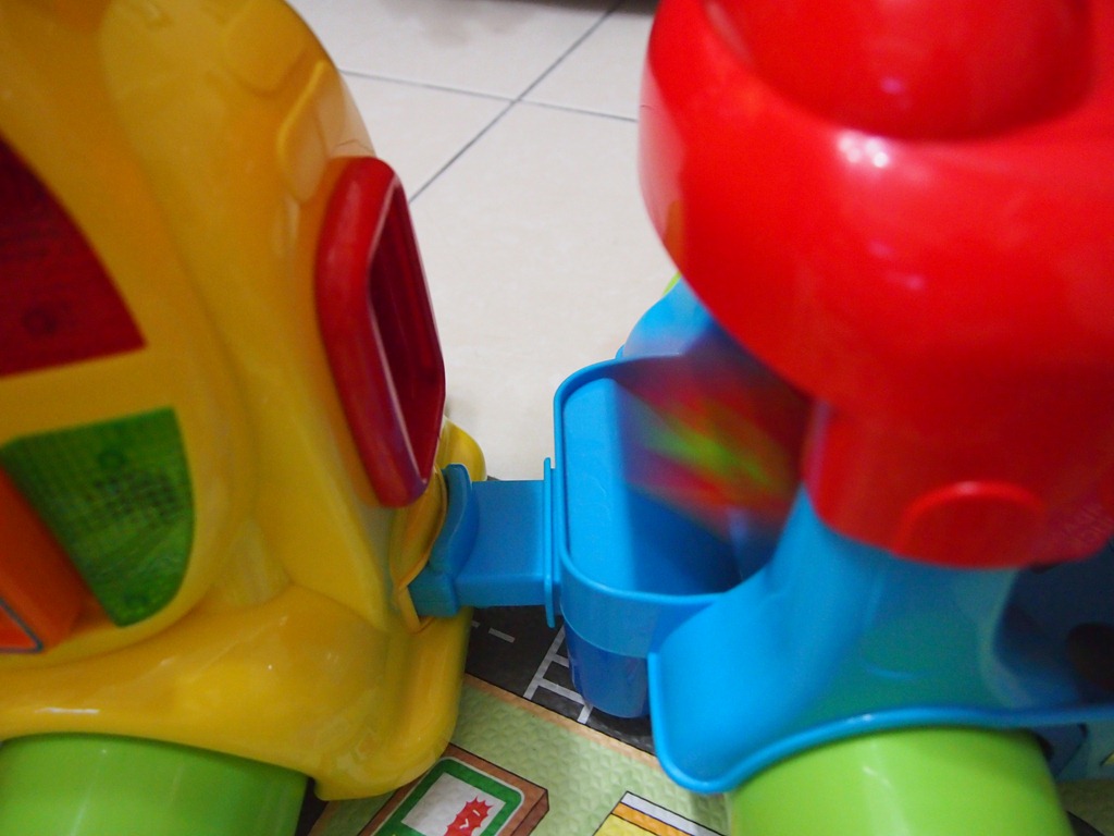 他會很流暢的滑落到火車後方的收納車裡面,讚!!